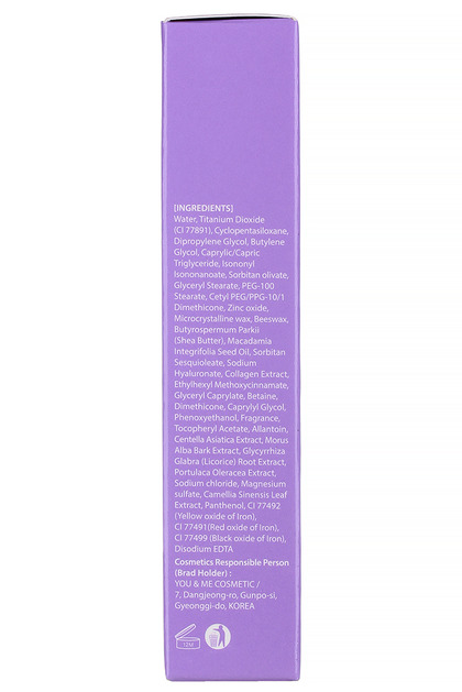 Изг-ль: You&Me Cosmetic, Корея, Республика, 7, Dangjeong-ro, Gunpo-si, Gyeonggi-do. Многофункциональный BB крем служит не только для маскировки кожных недостатков, но и эффeктивно ухаживает за кожей, оказывает увлажняющее действие, способствует разглаживанию морщинок, делает кожу упругой, осветляет пигментные пятна и следы постакне, что позволяет использовать его в качестве возрастного ухода за кожей. Ключевой компонент крема - коллаген, который является надежным помощником в разглаживании морщин, обладает способностью укреплять и подтягивать кожу, оказывает лифтинг-эффект. Способ применения: нанесите необходимое количество средства и равномерно растушуйте с помощью спонжа, кисти или подушечек пальцев.