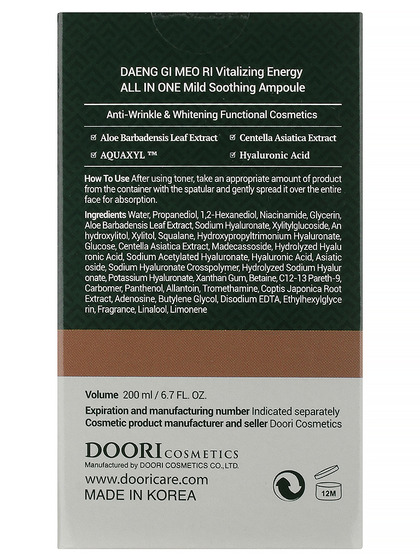 Изг-ль: DOORI COSMETICS Co., LTD., КОРЕЯ, РЕСПУБЛИКА, 588, Dabok-ro, Chubu-myeon, Geumsan-gun, Chungcheongnam-do. Сыворотка для лица с экстрактом алоэ, образует защитную пленку, которая помогает удерживать влагу в коже и обеспечивает глубокое увлажнение. Ингредиент TECA-BIOME содержит экстракт центеллы азиатской, который помогает успокоить проблемную кожу, снять раздражение и контролирует чрезмерное выделение кожного сала. Способ применения: после использования тонера, возьмите необходимое количество сыворотки и нанесите на лицо.