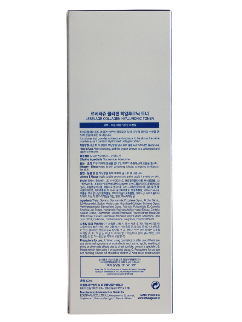 LBLG COLLAGEN HYALURONIC Тонер для лица увлажняющий с гиалуроновой кислотой и коллагеном LEBELAGE COLLAGEN HYALURONIC TONER