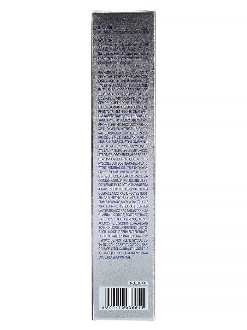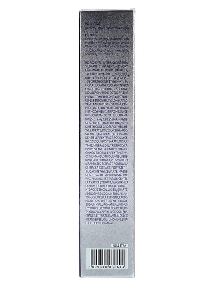 Water, ethylhexyl methoxycinnamate , titanium dioxide , zinc oxide, ethylhexyl salicylate, 4-methylbenzylidene camphor , isoamyl p-methoxycinnamate , cyclopentasiloxane, polyglyceryl-4 isostearate/cetyl peg/ppg-10/1dimethicone/hexyl laurate, cetyl peg/ppg-10/1 dimethicone, cyclopentasiloxane /cyclohexasiloxane, butylene glycol, lauryl dimethicone/polyglycerin-3 crosspolymer, sorbitan olivate, cetyl ethylhexanoate, phenyl trimethicone, niacinamide, 1,2-hexanediol, hydrogenated polyisobutene, dimethicone/methicone copolymer, mica, beeswax , glycerin , hydrolyzed collagen, vaccinium angustifolium (blueberry) fruit extract , aloe barbadensis leaf extract , ci 77492, magnesium sulfate, triethylhexanoin , aluminumhydroxide , stearic acid, portulaca oleracea extract, benzophenone-3 , manganese violet, beta-glucan, lactobacillus/kelp ferment filtrate/chlorella ferment, vitis vinifera (grape) fruit extract , chamomilla recutita (matricaria) flower extract , ginkgo biloba leaf extract , glycyrrhiza glabra (licorice) root extract , centella asiatica extract , silica dimethyl silylate, betaine , ci 77491, quaternium-18 bentonite , phenoxyethanol, camellia sinensis leaf extract (and)butylene glycol(and)water, ozokerite, allantoin, sodium hyaluronate, adenosine, disodium edta, lavandula angustifolia (lavender) oil/elettaria cardamomum seed oil/cedrus atlantica bark oil/pelargonium graveolens flower oil/citrus grandis (grapefruit) peel oil/litsea cubeba fruit oil/citrus aurantium dulcis (orange) oil/santalum album (sandalwood) oil