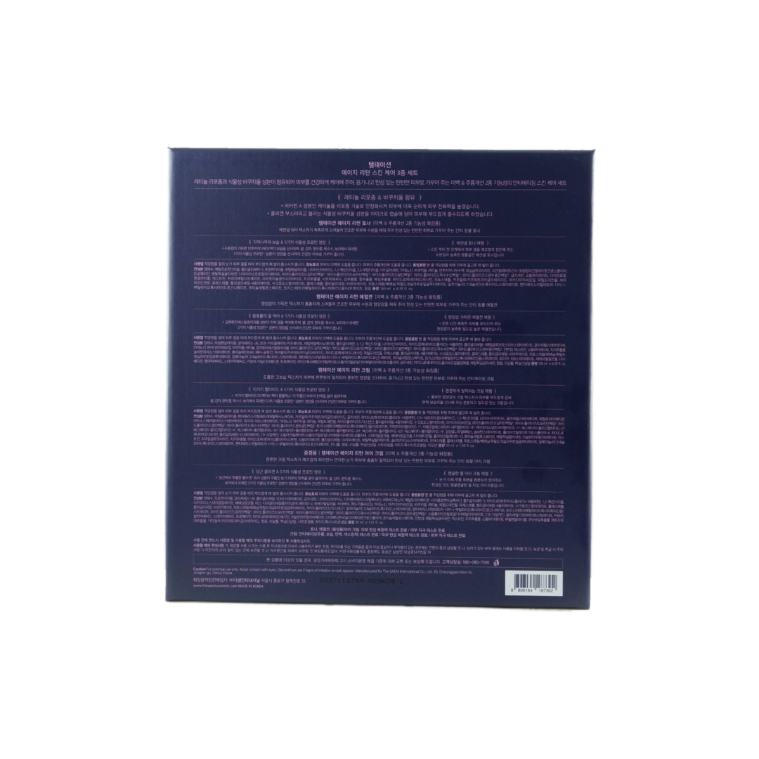 Изг-ль: THE SAEM INTERNATIONAL CO., LTD., Корея, Республика, 10F, 35, Cheonggyecheon-ro, Jongno-gu, Seoul. Антивозрастной набор содержит липосомы ретинола и растительные ингредиенты бакучиол, которые делают кожу упругой и эластичной, обладает двойным действием: осветляет, разглаживает морщинки. В наборе: тонер, эмульсия, крем, крем для кожи вокруг глаз.