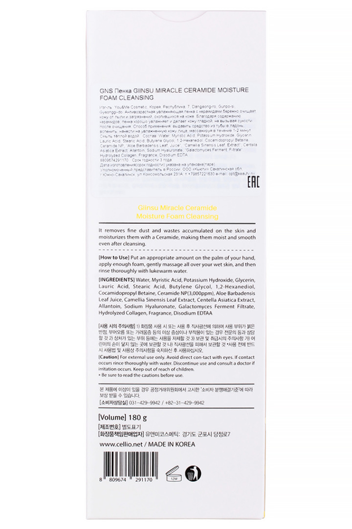 GNS MIRACLE Пенка для лица с керамидами GIINSU MIRACLE CERAMIDE MOISTURE FOAM CLEANSING