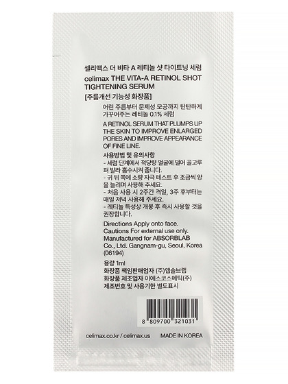 CLM VITA-A Сыворотка для лица подтягивающая с ретинолом CELIMAX THE VITA-A RETINOL SHOT TIGHTENING SERUM 1ML