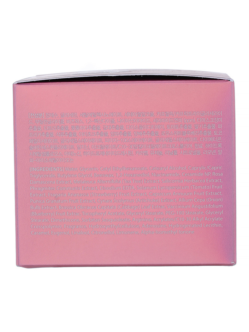 Water, Glycerin, Cetyl Ethylhexanoate, Cetearyl Alcohol, Caprylic/Capric Triglyceride, Butylene Glycol, Beeswax, Tocopheryl Acetate, Glyceryl Stearate, PEG-100 Stearate, Sorbitan Sesquioleate, Acrylates/C10-30 Alkyl Acrylate Crosspolymer, Hydroxyethylcellulose, 1,2-Hexanediol, Dimethicone, Niacinamide, Ceramide NP, Rosa Damascena Extract, Melaleuca Alternifolia (Tea Tree) Extract, Salicornia Herbacea Extract, Phragmites Communis Extract, Solanum Lycopersicum (Tomato) Fruit Extract, Fragaria Ananassa (Strawberry) Fruit Extract, Capsicum Annuum Fruit Extract, Punica Granatum Fruit Extract, Cynara Scolymus (Artichoke) Extract, Allium Cepa (Onion) Bulb Extract, Vaccinium Angustifolium (Blueberry) Fruit Extract, Arginine, Adenosine, Hydrogenated Lecithin, Fragrance, Caramel, Disodium EDTA, Eugenol, Linalool, Citronellol, Limonene, Alpha-Isomethyl Ionone