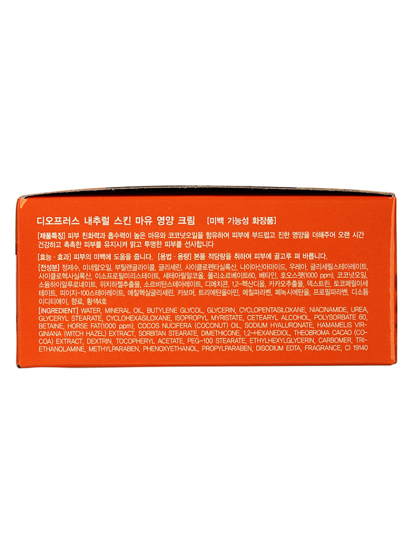 Изг-ль: GREENCOS Co.Ltd., Республика Корея, 64-30, Hagunsandan 1-ro, Yangchon-eup, Gimpo-si, Gyeonggi-do. Крем глубоко питает, улучшает цвет лица, осветляет пигментацию. Содержит лошадиный жир и кокосовое масло. Лошадиный жир - натуральный лечебный продукт, восстанавливает клетки кожи и способствует их скорейшей регенерации, не содержит консервантов или ароматизаторов, что обеспечивает наиболее подходящий уход даже для чувствительной кожи и помогает решить все проблемы сухой кожи. Применение: нанесите крем на последнем этапе по уходу за кожей.