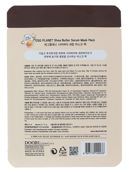 ДГМ EGG Маска на тканевой основе увлажняющая с маслом Ши EGG Planet Shea Butter serum mask pack 22ml