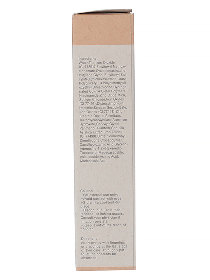 Изготовитель: HINATURE CO.LTD., Республика Корея, 21990 Smart Valley E dong 908 ho, Songdo Mirae-ro 30, Yeonsu-gu, Incheon-si. BB-крем для чувствительной кожи с экстрактом центеллы выравнивает тон кожи, маскирует несовершенства и придает естественный сияющий финиш. ББ-крем обладает солнцезащитным фактором SPF38/PA+++, защищает кожу от активного воздействия UVA и UVB лучей, уменьшает нежелательную пигментацию и замедляет процессы старения. Способ применения: нанесите необходимое количество средства и равномерно растушуйте с помощью спонжа, кисти или подушечек пальцев.