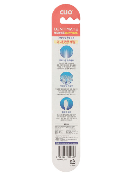 Изг-ль: CLIO Co., Ltd., КОРЕЯ, РЕСПУБЛИКА, 52-43, Geumgok-ro, Jiksan-eup, Seobuk-gu, Cheonan-si, Chungcheongnam-do. Универсальная зубная щетка для всей семьи. Мягкие ультратонкие щетинки толщиной 0,01 мм обеспечивает чистку, не раздражая десны. Компактная головка размером приблизительно 25 мм, эргономичная конструкция. Щетинки имеет форму гребня, расположенные под разными углами, тщательно очищает промежутки между зубами и деснами.