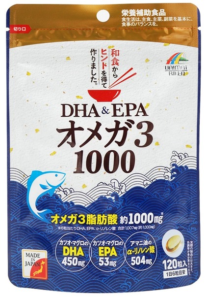 Изготовитель: "Unimat Riken Corporation", 2-7-28, Minamiaoyama, Minato-Ku, Tokyo (Япония). DHC (ДГК - докозагексаеновая кислота), ненасыщенная жирная кислота содержащаяся в рыбьем жире. Организм человека не способен сам вырабатывать ДГК и должен для сохранения здоровья получать ее, главным образом, через пищу. EPA (ЭПК – Эйкозапентаеновая ненасыщенная жирная кислота, обладающая противовоспалительным действием). Препарат эффективен для лечения и предотвращения атеросклероза; повышения иммунитета (защитных сил организма); лечения простуды, ОРЗ, гриппа; профилактики респираторных инфекций; лечения тромбофлебита; лечения рахита и сопутствующих заболеваний; улучшения настроения, психического состояния, памяти; улучшения зрения и различения цветов; улучшения роста костной ткани; улучшения состояния ногтей, кожи, волос.