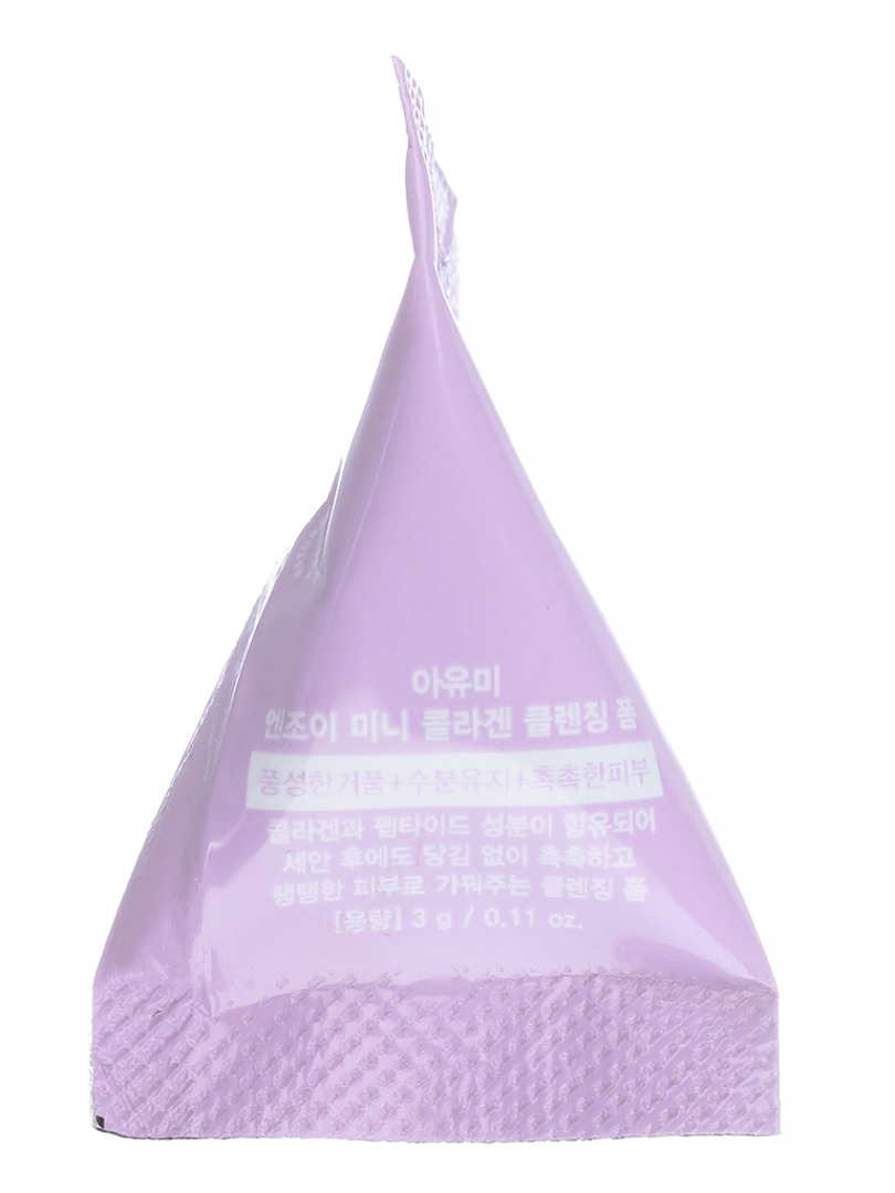 Изготовитель: MK Trading Co Ltd., КОРЕЯ, РЕСПУБЛИКА, #603, WISCO BLDG, 15, NONHYEON-RO 26BEON-GIL, NAMDONG-GU, INCHEON. Пенка для умывания в мини-пирамидках Ayoume Enjoy Mini Collagen Cleansing Foam. Пенка для умывания благодаря коллагену придает коже эластичность и увлажняет ее. Средство бережно очищает кожу лица от различных загрязнений и остатков косметики. Пенка с пептидом и коллагеном не пересушивает кожу, уменьшает раздражение и создает защитный слой на коже, делая ее нежной и мягкой. Способ применения: Вспенить средство и нанести на влажную кожу лица массажными движениями, затем смыть теплой водой.