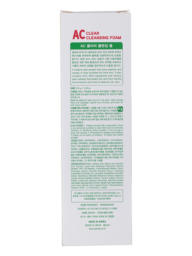 Изг-ль: Beautynetkorea Co. Ltd., КОРЕЯ, РЕСПУБЛИКА, 20, Baekbeom-ro 577beon-gil, Bupyeong-gu, Incheon. Пенка для проблемной кожи мягко очищает кожу, увлажняет ее и успокаивает. Антибактериальные свойства пенки подавляют деятельность болезнетворных микроорганизмов, способствуют заживлению воспалений и предупреждают появление новых. Также пенка контролирует выработку кожного жира и обеспечивает мягкое отшелушивание омертвевших клеток, которые закупоривают поры. Способ применения: вспенить средство, нанести на влажную кожу лица легкими массажными движениями, затем смыть теплой водой.