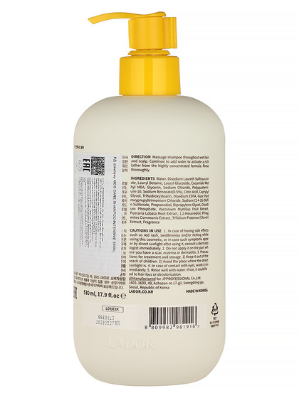 Изг-ль: JPPROFESSIONAL Co., Ltd., Корея, Республика, 1601-1603, 49, Achasan-ro 17-gil, Seongdong-gu, Seoul. Мягкий и деликатный детский шампунь с неионогенными поверхностно-активными веществами, не содержит силикон, сульфаты и искусственные красители. Формула с гипоаллергенной отдушкой минимизирует раздражение, оставляя приятный аромат. Средство предназначено для младенцев, особое внимание уделяется безопасности. Продукт прошел клинические испытания на отсутствие раздражения, повышенную чувствительность и гипоаллергенность. Способ применения: равномерно нанесите средство на влажные волосы и кожу головы, помассируйте, смойте теплой водой.