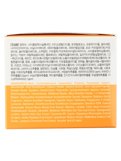 Water, Cyclohexasiloxane, Isopentyldiol, Trehalose, Propanediol, Glycerin, Niacinamide, Vinyl Dimethicone, Cetearyl Olivate, Cetearyl Alcohol, Coco-Caprylate/Caprate, Sorbitan Olivate, Squalane, Caprylic/Capric Triglyceride, Cyclopentasiloxane, Arginine, Carbomer, Ethylhexylglycerin, Chlorphenesin, Ethylhexyl Olivate, Silica Dimethyl Silylate, 1,2-Hexanediol, Betaine, Hydroxyethyl Acrylate/Sodium Acryloyldimethyl Taurate Copolymer, Butylene Glycol, Fragrance, Sodium Acrylates Copolymer, Caprylyl Glycol, Panthenol, Polyglyceryl-4 Oleate, Limonene, Adenosine, Dimethicone/Vinyl Dimethicone Crosspolymer, Disodium EDTA, Sodium Hyaluronate, Illicium Verum (Anise) Fruit Extract, Allantoin, Linalool, Citral, Hexyl Cinnamal, Octyldodecanol, Geraniol, Citronellol, Melaleuca Alternifolia (Tea Tree) Leaf Extract, Hydrogenated Lecithin, Hedera Helix (Ivy) Extract, Ceramide NP(1ppm), Hippophae Rhamnoides Extract(0.5ppm), Vanilla Planifolia Fruit Extract, Cynanchum Atratum Extract, Phyllanthus Emblica Fruit Extract, Juniperus Communis Fruit Extract, Ascorbic Acid(0.1ppm)