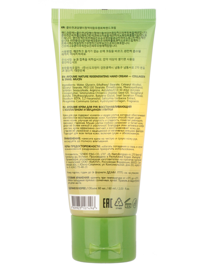АЮМ Hand Крем для рук восстанавливающий с коллагеном и муцином улитки Regenerating hand cream with collagen and snail mucin for all skin 60ml