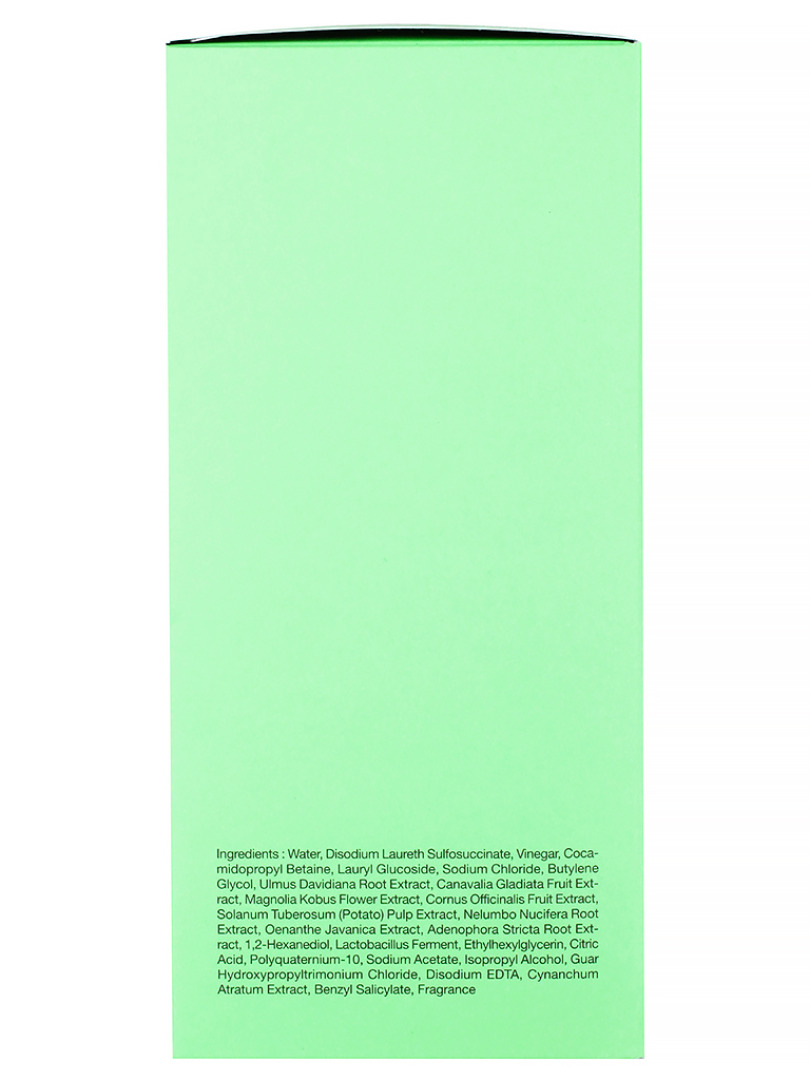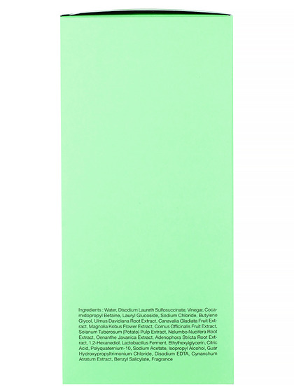 Water, Disodium Laureth Sulfosuccinate, Cocamidopropyl Betaine, Sodium Chloride, Vinegar, Lauryl Glucoside, Butylene Glycol, Ulmus Davidiana Root Extract, Canavalia Gladiata Fruit Extract, Magnolia Kobus Flower Extract, Cornus Officinalis Fruit Extract, "Solanum Tuberosum (Potato) Pulp, Extract", Nelumbo Nucifera Root Extract, Oenanthe Javanica Extract, Adenophora Stricta Root Extract, 1,2-Hexanediol, Lactobacillus Ferment, Ethylhexylglycerin, Citric Acid, Polyquaternium-10, Sodium Acetate, Isopropyl Alcohol, "Guar Hydroxypropyltrimonium, Chloride", Disodium EDTA, Butylene Glycol, Cynanchum Atratum Extract, Fragrance (Benzyl Salicylate)