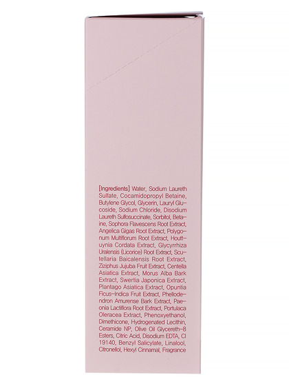 Water, Sodium Laureth Sulfate, Cocamidopropyl Betaine, Butylene Glycol, Glycerin, Lauryl Glucoside, Sodium Chloride, Disodium Laureth Sulfosuccinate, Sorbitol, Betaine, Sophora Flavescens Root Extract, Scutellaria Baicalensis Root Extract, Polygonum Multiflorum Root Extract, Houttuynia Cordata Extract, Glycyrrhiza Uralensis (Licorice) Root Extract, Centella Asiatica Extract, Angelica Gigas Root Extract, Swertia Japonica Extract, Portulaca Oleracea Extract, Plantago Asiatica Extract, Phellodendron Amurense Bark Extract, Paeonia Lactiflora Root Extract, Opuntia Ficus-Indica Fruit Extract, Morus Alba Bark Extract, Phenoxyethanol, Dimethicone, Hydrogenated Lecithin, Ceramide NP, Olive Oil Glycereth-8 Esters, Citric Acid, Disodium EDTA, CI 19140, Fragrance (Benzyl Salicylate, Citronellol, Hexyl Cinnamal)