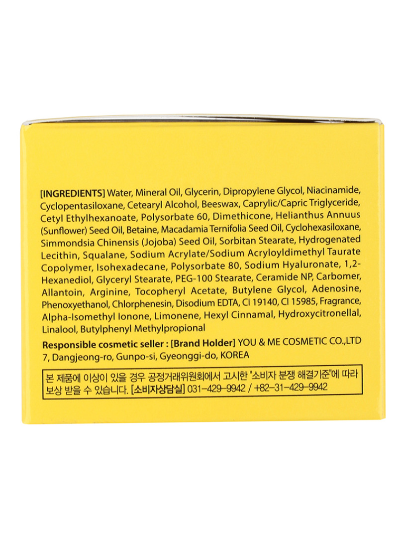 Изг-ль: You&Me Cosmetic, Корея, Республика, 7, Dangjeong-ro, Gunpo-si, Gyeonggi-do. Мягкий крем с керамидами, поддерживает увлажняющую способность кожи. Быстро впитывается, питает и оздоравливает кожу. Средство помогает устранить сухость и шелушения, интенсивно питает кожу и укрепляет защитный липидный барьер, который предупреждает агрессивное воздействие внешних факторов на клетки эпидермиса. Способ применения: нанести на очищенную и тонизированную кожу лица и шеи.