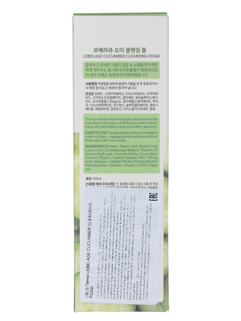 LBLG FOAM Пенка для умывания с экстрактом огурца LEBELAGE CUCUMBER CLEANSING FOAM
