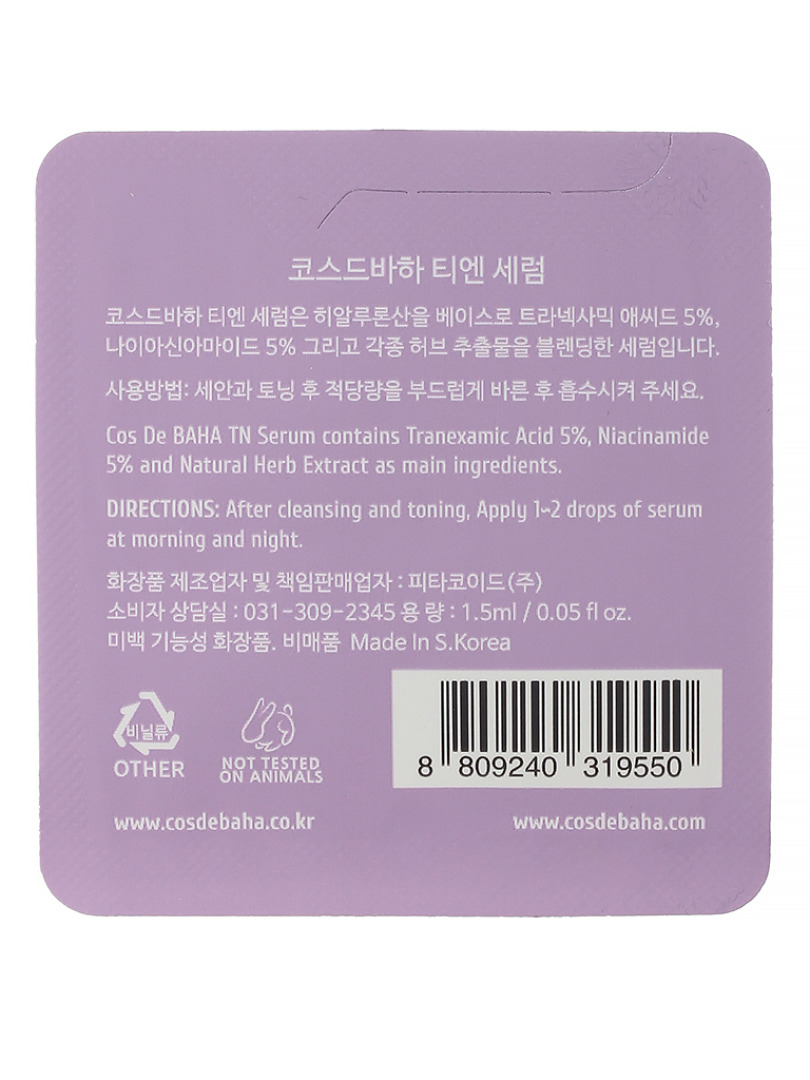 Изг-ль: PHYTACOID Inc., 905, 33, Omokcheon-ro 132beon-gil, Gwonseon-gu, Suwon-si, Gyeonggi-do, Republic of Korea. Сыворотка с транексамовой кислотой и ниацинамидом глубоко увлажняет, выравнивает тон, осветляет покраснения и постакне и улучшает цвет лица. Средство успокаивает раздражения, разглаживает микрорельеф, делает кожу более гладкой и упругой. Устраняет тусклость, уменьшает видимость купероза, возвращает коже здоровый вид. Способ применения: нанести на очищенную и тонизированную кожу лица, шеи и декольте легкими массажными движениями. Первую неделю используйте средство через день. При отсутствии зуда и покраснений переходите на ежедневное использование утром и вечером.