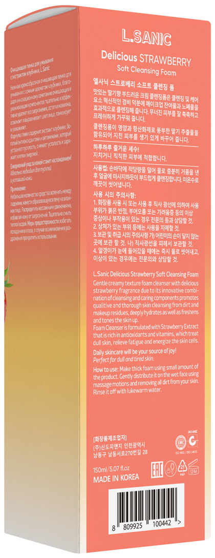 LSN Foam Пенка очищающая для умывания с экстрактом клубники, 150мл, L.Sanic