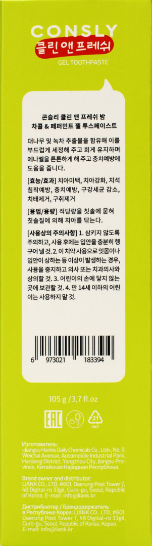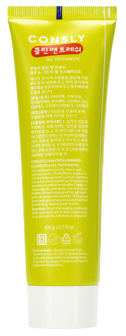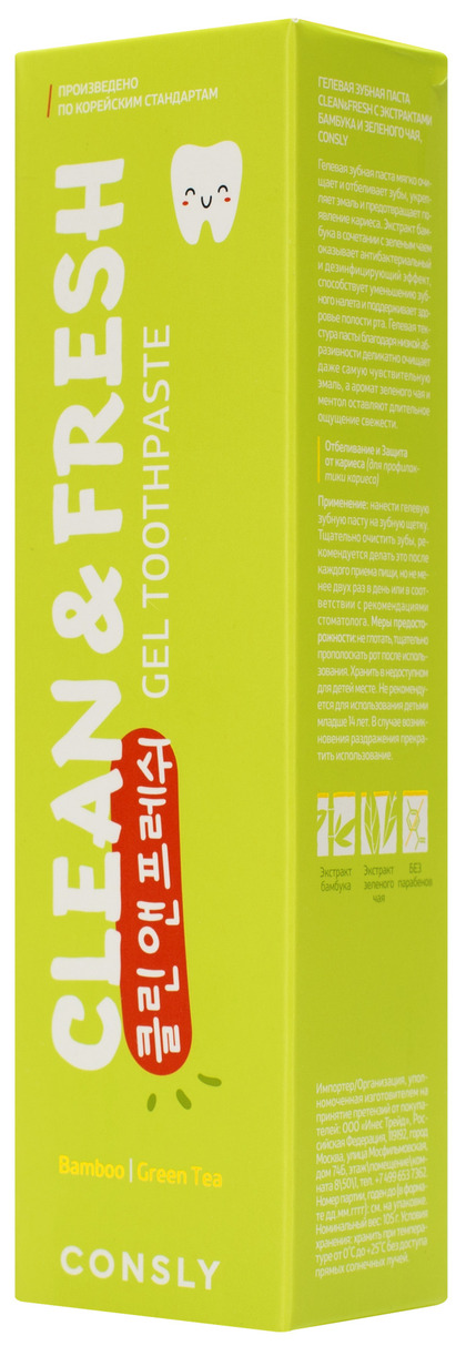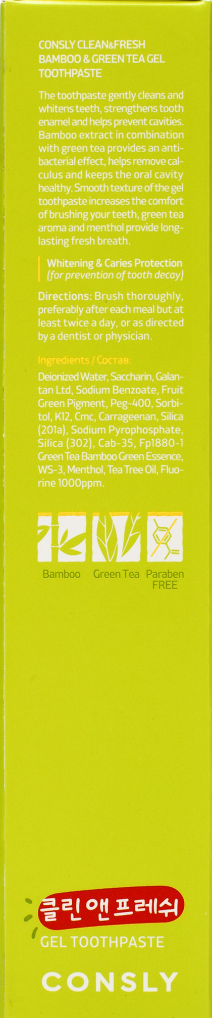 CNS Toothpaste Паста зубная гелевая Clean&Fresh с экстрактами бамбука и зеленого чая Bamboo & Green Tea Gel Toothpaste, 105г