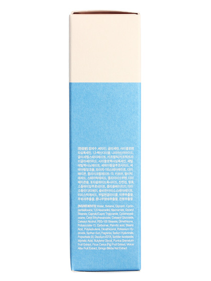 Water, Betaine, Glycerin, Cyclopentasiloxane, 1,2-Hexanediol, Niacinamide, Glyceryl Stearate, Caprylic/Capric Triglyceride, Cyclohexasiloxane, Cetyl Ethylhexanoate, Cetearyl Glucoside, Cetearyl Alcohol, PEG-100 Stearate, Dimethicone, Polyacrylate-13, Carbomer, Palmitic acid, Stearic Acid, Polyisobutene, Dimethiconol, Potassium Hydroxide, Xanthan Gum, Fragrance, Sodium Hyaluronate,Polysorbate 20, Disodium EDTA, Sorbitan Isostearate, Myristic Acid, Butylene Glycol, Punica Granatum Fruit Extract, Ficus Carica (Fig) Fruit Extract, Morus Alba Fruit Extract, Ginkgo Biloba Nut Extract