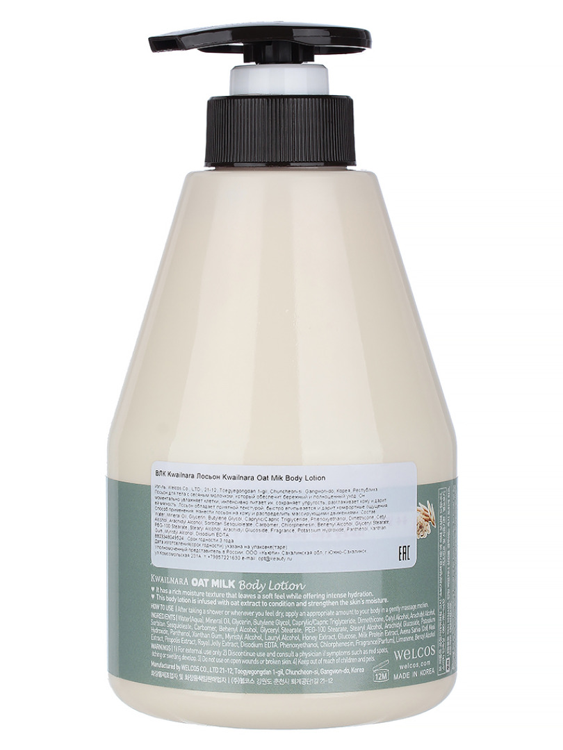 Изг-ль: Welcos Co., LTD., 21-12, Toegyegongdan 1-gil, Chuncheon-si, Gangwon-do, Корея, Республика. Лосьон с экстрактом овсяного молока сохраняет кожу увлажненной в течение длительного времени. Благодаря молочному белку, средство защищает кожу от потери влаги и питательных веществ. Способ применения: после принятия душа, , распределить средство на кожу тела нежными, массажными движениями.
