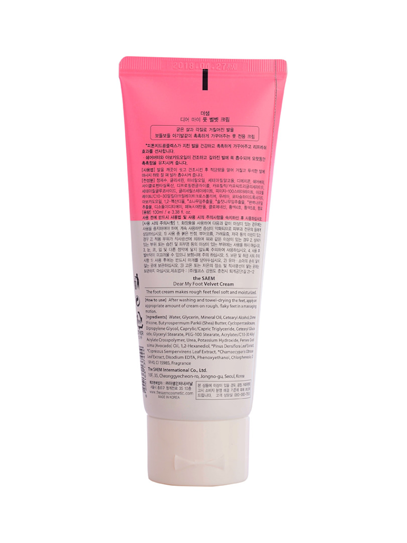 Изг-ль: THE SAEM INTERNATIONAL CO.LTD., КОРЕЯ, РЕСПУБЛИКА, 10F, 35, Cheonggyecheon-ro, Jongno-gu, Seoul. Питательный крем для ног с маслами ши и авокадо обладает превосходным смягчающим действием и хорошо подходит для ухода за огрубевшей, шероховатой и сухой кожей стоп. Нежная текстура в процессе увлажнения образует на коже невидимую пленку для удержания влаги, благодаря чему она становится бархатистой.Применение: нанести на чистую сухую кожу ног массирующими движениями.