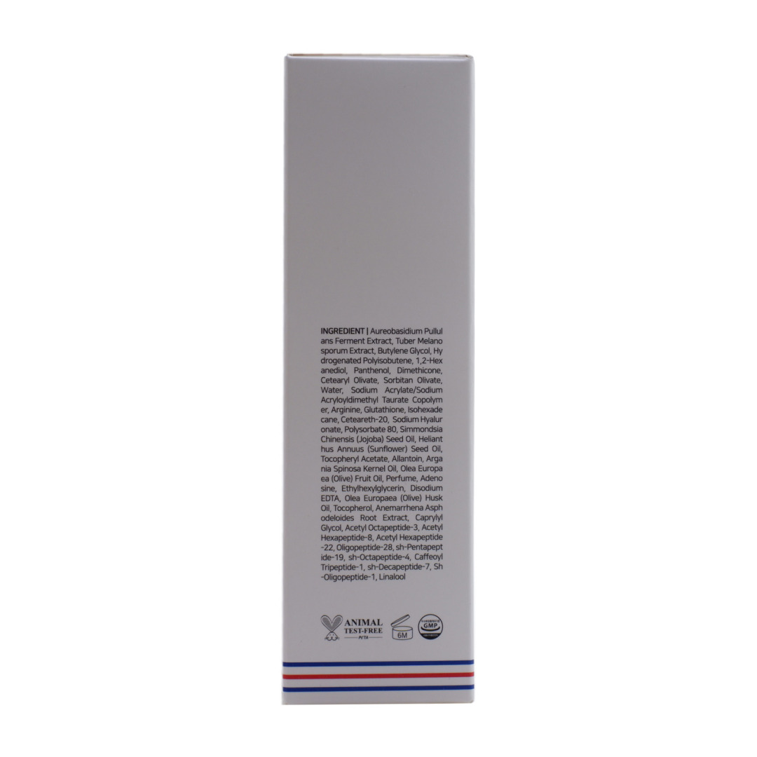 Aureobasidium Pullulans Ferment Extract, Tuber Melanosporum Extract, Butylene Glycol, Hydrogenated Polyisobutene, 1,2-Hexanediol, Panthenol, Dimethicone, Cetearyl Olivate, Sorbitan Olivate, Water, Sodium Acrylate/Sodium Acryloyldimethyl Taurate Copolymer, Arginine, Glutathione, Isohexadecane, Ceteareth-20, Sodium Hyaluronate, Polysorbate 80, Simmondsia Chinensis (Jojoba) Seed Oil, Helianthus Annuus (Sunflower) Seed Oil, Tocopheryl Acetate, Allantoin, Argania Spinosa Kernel Oil, Olea Europaea (Olive) Fruit Oil, Perfume, Adenosine, Ethylhexylglycerin, Disodium EDTA, Olea Europaea (Olive) Husk Oil, Tocopherol, Anemarrhena Asphodeloides Root Extract, Caprylyl Glycol, Acetyl Octapeptide-3, Acetyl Hexapeptide-8, Acetyl Hexapeptide-22, Oligopeptide-28, sh-Pentapeptide-19, sh-Octapeptide-4, Caffeoyl Tripeptide-1, sh-Decapeptide-7, Sh-Oligopeptide-1