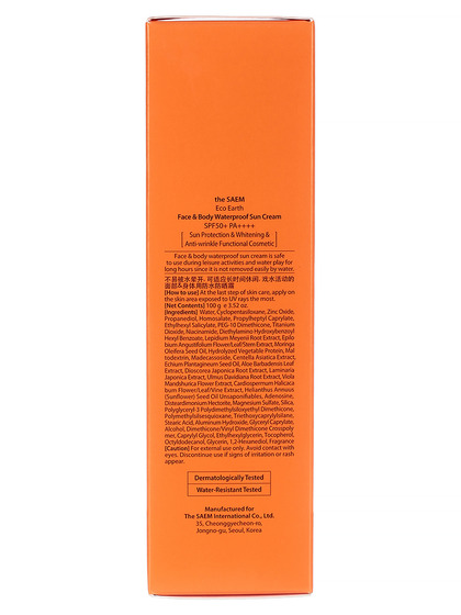 Изготовитель: THE SAEM INTERNATIONAL CO.LTD., КОРЕЯ, РЕСПУБЛИКА, 10F, 35, Cheonggyecheon-ro, Jongno-gu, Seoul. Солнцезащитный водостойкий крем для лица и тела эффективно оберегает кожу от фотоповреждений, фотостарения, а также от иссушения, появления пигментных пятен, ожогов и покраснений, подходит для самой чувствительной кожи. Способ применения: за 15-20 минут до выхода на солнце нанесите крем и обновляйте через каждые 3-4 часа пребывания на активном солнце.