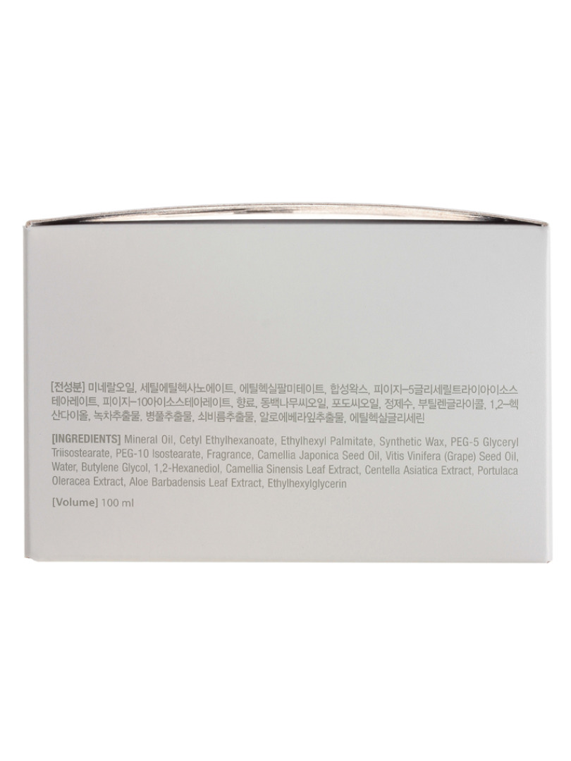 Mineral Oil, Cetyl Ethylhexanoate, Ethylhexyl Palmitate, Synthetic Wax, PEG-5 Glyceryl Triisostearate, PEG-10 Isostearate, Fragrance, Camellia Japonica Seed Oil, Vitis Vinifera (Grape) Seed Oil, Water, Butylene Glycol, 1,2-Hexanediol, Camellia Sinensis Leaf Extract, Centella Asiatica Extract, Portulaca Oleracea Extract, Aloe Barbadensis Leaf Extract, Ethylhexylglycerin