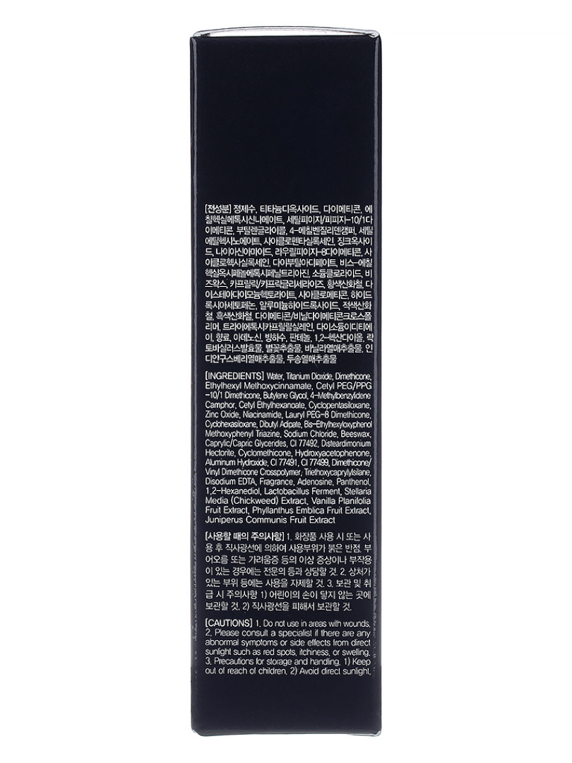 Water, Mineral Oil, Ethylhexyl Methoxycinnamate, Ethylhexyl Salicylate, Dimethicone, Niacinamide, Bis-Ethylhexyloxyphenol Methoxyphenyl Triazine, Titanium Dioxide, Dipropylene Glycol, Cetyl PEG/PPG-10/1 Dimethicone, Propylene Glycol, Sorbitan Olivate, Iron Oxide Yellow, Beeswax, Phenoxyethanol, Aluminum Hydroxide, Triethoxycaprylylsilane, Iron Oxide Red, Iron Oxide Black, Sodium Chloride, Allantoin, Sorbitan Sesquioleate, Disodium EDTA, Butylene Glycol, Fragrance, Betaine, Tocopheryl Acetate, 1,2-Hexanediol, Artemisia Annua Extract, Nepeta Cataria Extract, Ilex Aquifolium (Holly) Leaf Extract, Althaea Officinalis Leaf Extract, Ilex Paraguariensis Leaf Extract, Nasturtium Officinale Extract, Camellia Sinensis Leaf Extract, Trifolium Pratense (Clover) Extract, Saponaria Officinalis Extract, Morus Alba Leaf Extract, Pinus Densiflora Leaf Extract, Portulaca Oleracea Extract, pinacia Oleracea (Spinach) Leaf Extract, Artemisia Princeps Extract, Olea Europaea (Olive) Leaf Extract, Agave Americana Leaf Extract, Plantago Asiatica Extract, Aster Scaber Extract, Ephedra Sinica Extract, Chlorella Pyrenoidosa Extract, Sodium Hyaluronate, Microcrystalline Wax, Butyrospermum Parkii (Shea) Butter, Adenosine