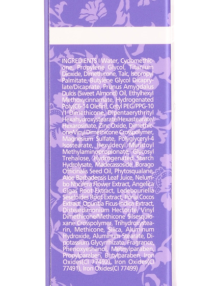Methicone, iron oxides(ci 77491), iron oxides(ci 77499), glycosyl trehalose, fragrance, methylparaben, hydrogenated starch hydrolysate, silica dimethyl silylate, propylparaben, aluminum hydroxide, aluminum stearate, butylparaben, dipotassium glycyrrhizate, madecassoside, borago officinalis seed oil, butylene glycol, squalane, water, cyclomethicone, propylene glycol, titanium dioxide, dimethicone, talc, isopropyl palmitate, butylene glycoldicaprylate/dicaprate, prunus amygdalus dulcis (sweetalmond) oil, ethylhexyl methoxycinnamate, hydrogenated c6-14 olefin polymers, cetyl peg/ppg-10/1 dimethicone, dipentaerythritylhexahydroxystearate/hexastearate/hexarosinate, zinc oxide, magnesium sulfate, polyglyceryl-4 isostearate, hexyldecyl myristoylmethylaminopropionate, dimethicone/vinyl dimethiconecrosspolymer, iron oxides(ci 77492), disteardimonium hectorite, vinyl dimethicone/methiconesilsesquioxane crosspolymertrihydroxystearin, phenoxyethanol