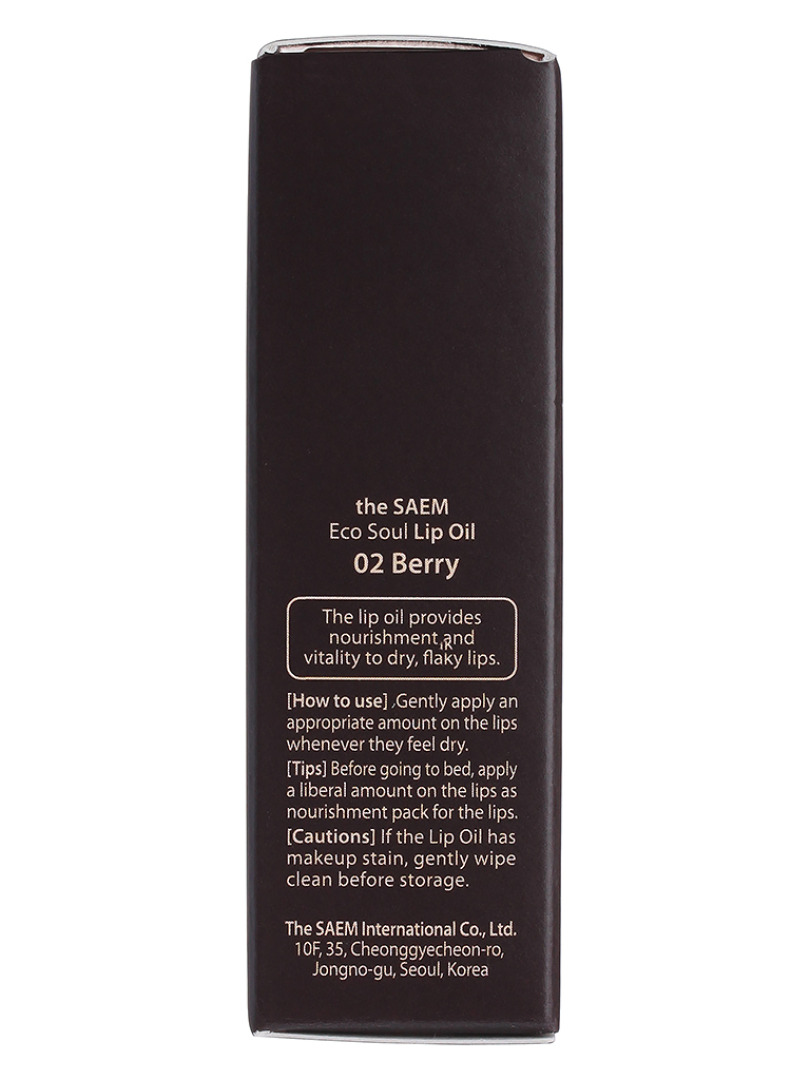 Изготовитель: THE SAEM INTERNATIONAL CO.LTD., КОРЕЯ, РЕСПУБЛИКА, 10F, 35, Cheonggyecheon-ro, Jongno-gu, Seoul. Масло для губ придаст губам объемное свечение. Супервлагостойкий масляный комплекс обеспечивает питание и увлажнение губам, восстанвливает сухие, потрескавшиеся губы. Содержит экстракт малины, черники, масло камели, экстракт розы. Способ применения: аккуратно нанесите на сухие, чистые губы.