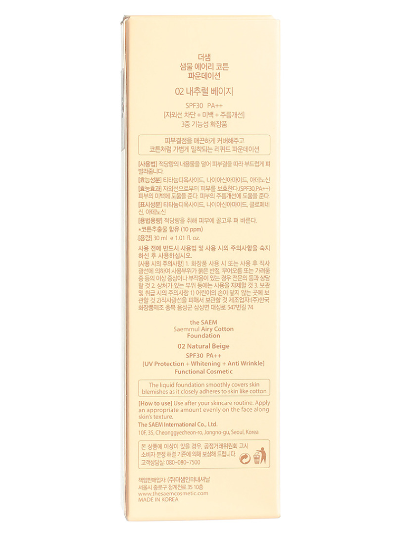 СМ Saemmul Airy Основа для лица тональная Saemmul Airy Cotton Foundation 02 Natural Beige 30мл