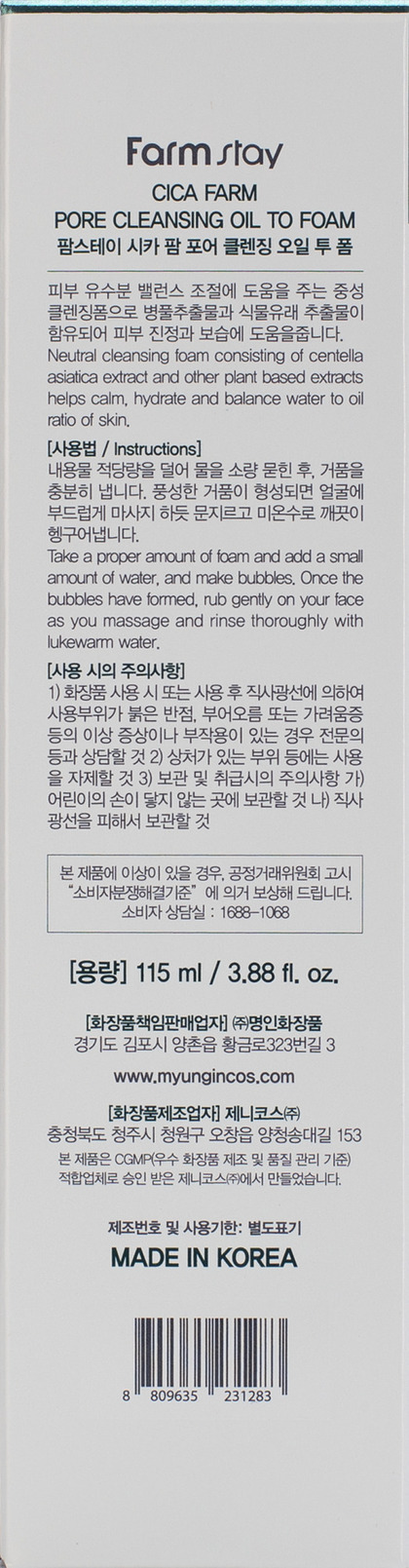 ФМС Cica Farm Масло-пенка гидрофильное с центеллой азиатской FarmStay Cica Farm Pore Cleansing Oil To Foam, 115мл