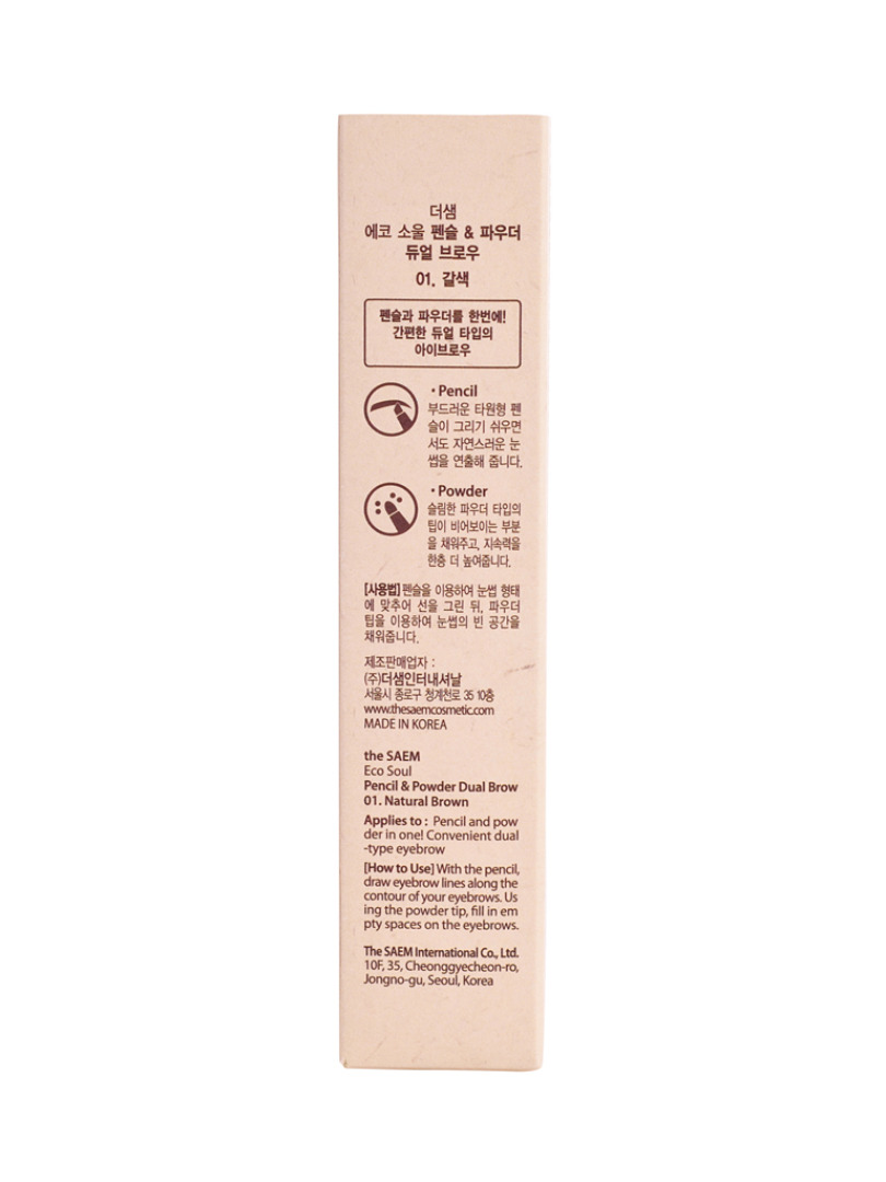 Изготовитель: "THE SAEM INTERNATIONAL CO.LTD"., КОРЕЯ, РЕСПУБЛИКА, 10F, 35, Cheonggyecheon-ro, Jongno-gu, Seoul. Двусторонний карандаш-пудра для бровей. Обладает двойной текстурой – треугольный грифель с натуральным пигментом без труда оставляет четкий контур и естественный оттенок, порошок быстро заполняет пространство между волосками, создавая однородный тон и аккуратную форму бровей. Содержит диоксид кремния, благодаря чему впитывает пот и себум и позволяет дольше сохранить макияж. Карандаш имеет автоматическое выдвижение и аппликатор с другой стороны для нанесения оттеночного порошка. Применение: очертите контур бровей карандашом и заполните внутреннее пространство порошком. Объем: 0,5гр*0,3гр