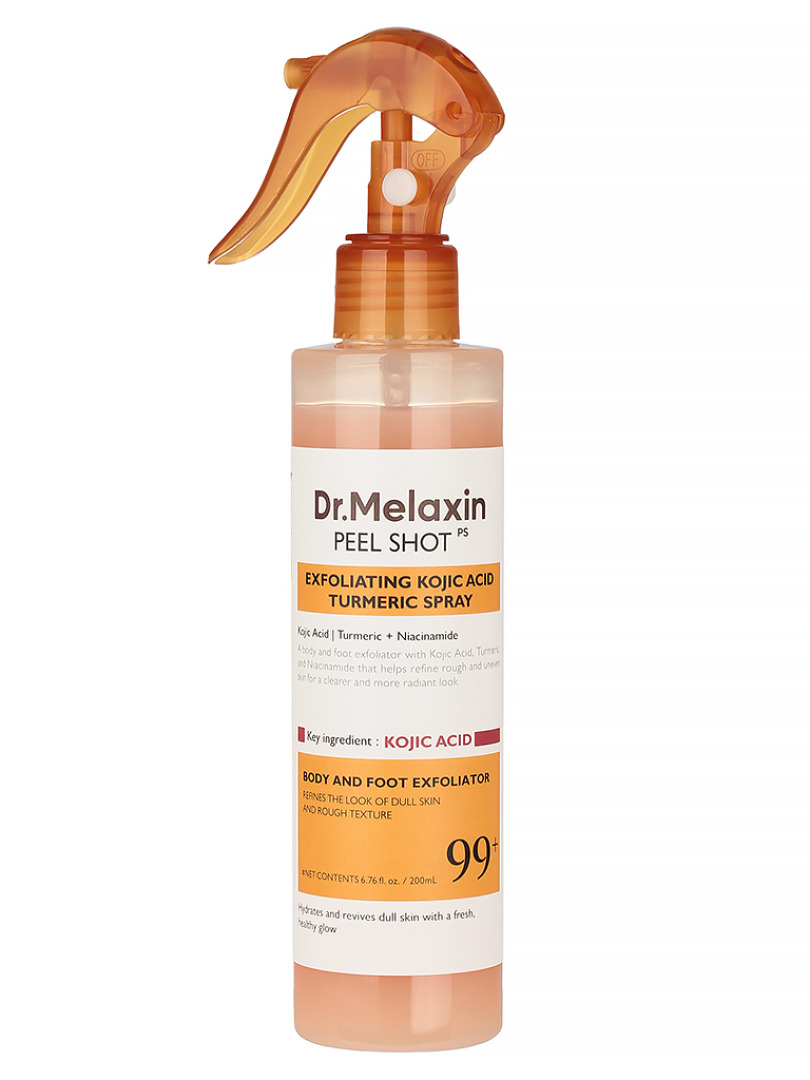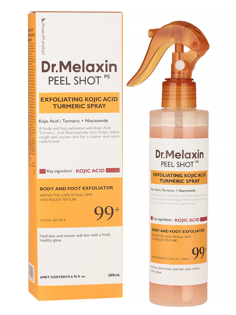DR.MELAXIN ДОКТОР МЕЛАКСИН Обновляющий спрей-сыворотка для тела с койевой кислотой и куркумой PEEL SHOT EXFOLIATING KOJIC ACID TURMERIC SPRAY 200 мл