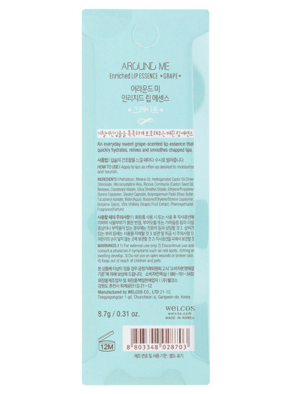 Изготовитель: Welcos Seoul Co.Ltd., КОРЕЯ, РЕСПУБЛИКА, 1302, Miwon B/d, 70, Gukjegeumyung-ro, Yeongdeungpo-gu, Seoul. Эссенция для губ создает увлажняющее покрытие. Содержит масло ши и пчелиный воск. Средство смягчает и защищает от обветривания, отшелушивает мертвые клетки кожи губ. Освежающий аромат винограда создает прекрасное настроение на весь день. Не раздражает кожу губ. Способ применения: небольшое количество эссенции выдавить из тюбика, нанести на губы массажными движениями.