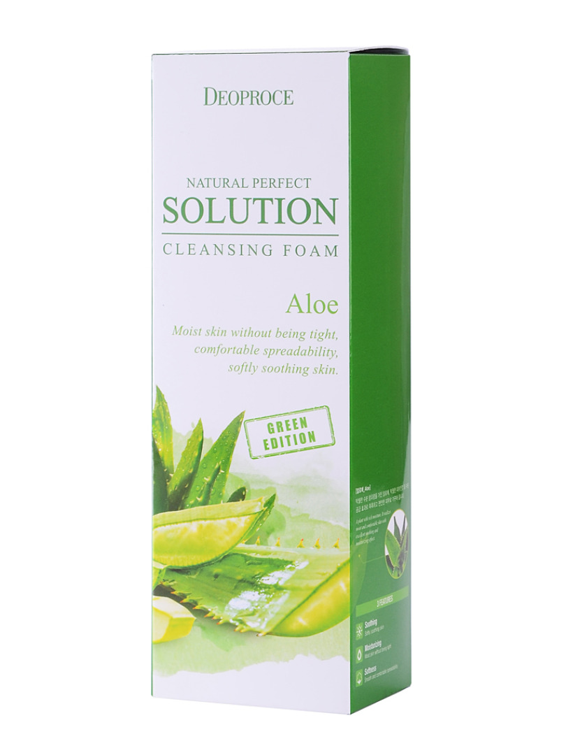 ДП FOAM Пенка для лица с экстрактом алоэ DEOPROCE NATURAL PERFECT SOLUTION CLEANSING FOAM GREEN EDITION ALOE