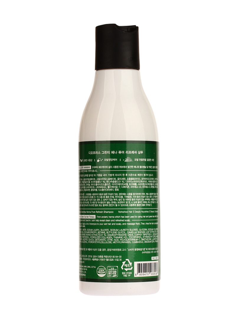ДП HAIR GREENTEA Шампунь для волос с зеленым чаем и хной DEOPROCE GREENTEA HENNA PURE REFRESH SHAMPOO 200мл
