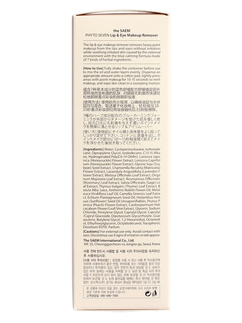 СМ PHYTO SEVEN Средство для снятия макияжа PHYTO SEVEN Lip & Eye Makeup Remover 150ml