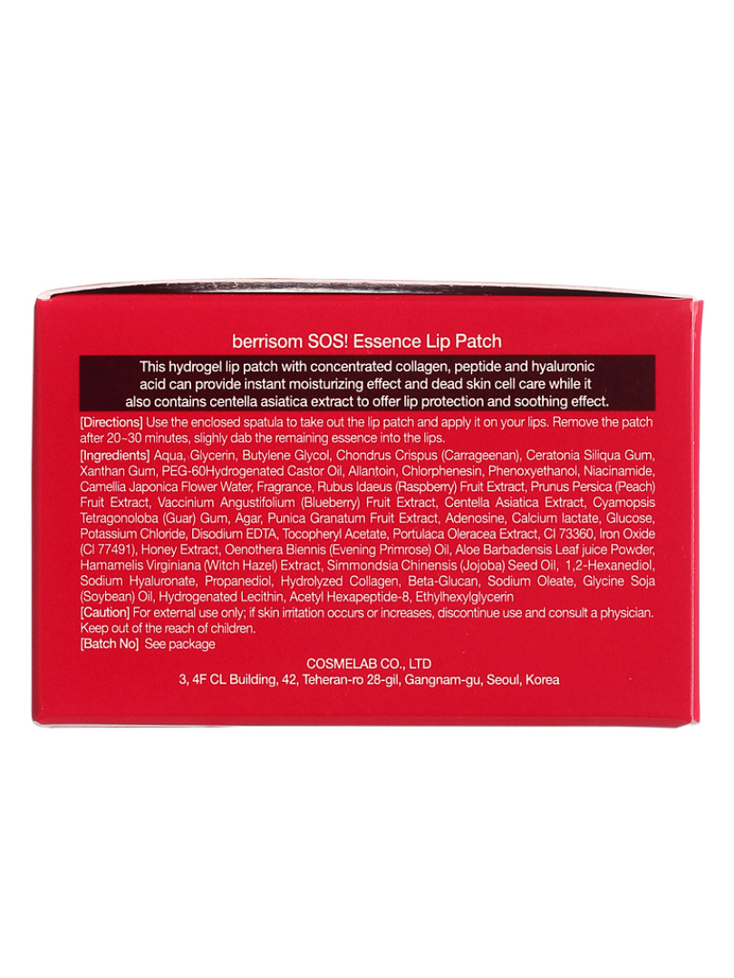 Изготовитель: Cosmelab Co. Ltd., КОРЕЯ, РЕСПУБЛИКА, 3, 4F CL Building 42, Teheran-ro 28-gil, Gangnam-gu, Seoul. Маска-патч эффективно смягчает, увлажняет и питает кожу, а также обладает регенерирующим и противовоспалительным действием. Маска имеет гидрогелевую текстуру, что позволяет ей максимально плотно прилегать к поверхности кожи. Эффект от применения маски будет моментальным: губы станут более нежными, трещинки, сухость и шелушения исчезнут, также смягчится и кожа вокруг губ. Способ применения: Достаньте патч из упаковки при помощи лопаточки и приложите к губам. Оставьте на 10-20 минут.