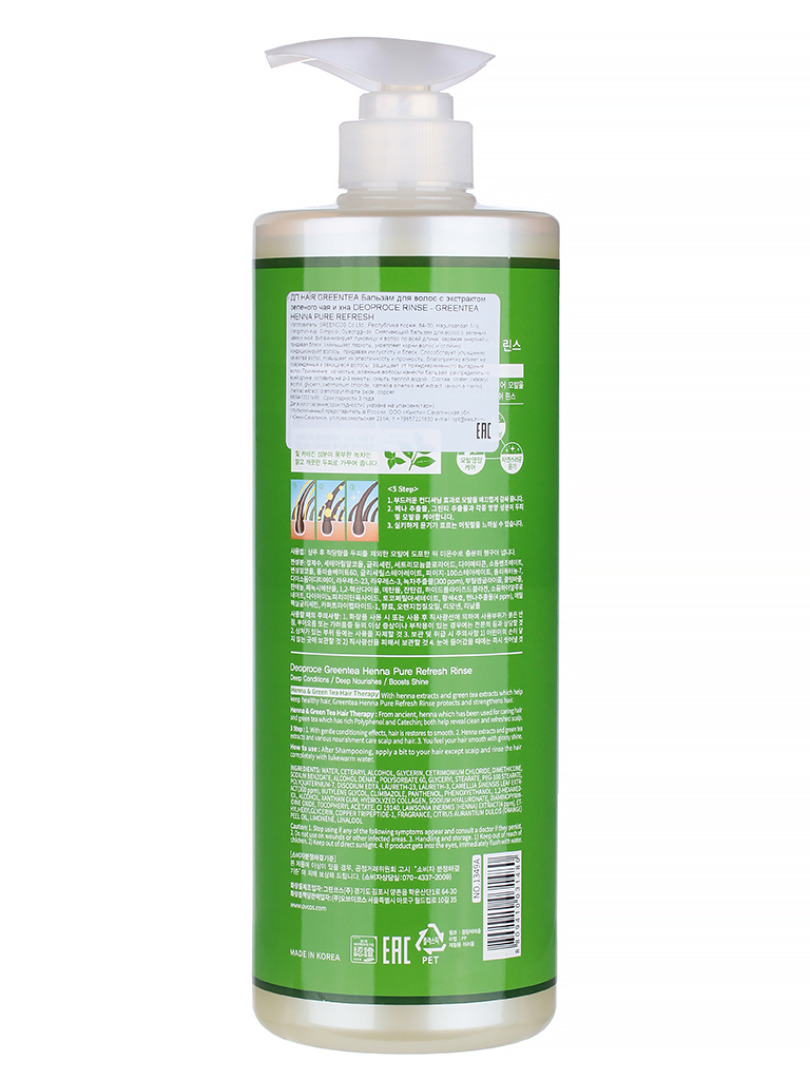 ДП HAIR GREENTEA Бальзам для волос с экстрактом зеленого чая и хна DEOPROCE RINSE - GREENTEA HENNA PURE REFRESH