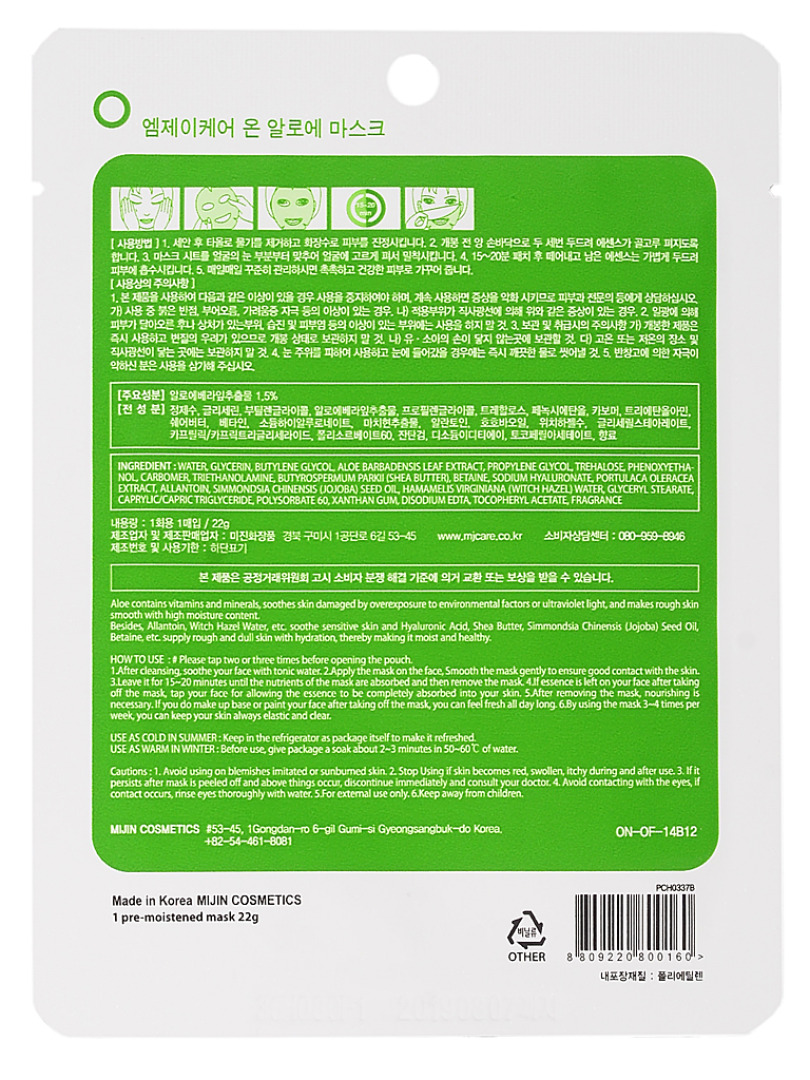 МЖ MJ CARE Маска тканевая для лица с алоэ MJ on Aloe mask pack 22гр