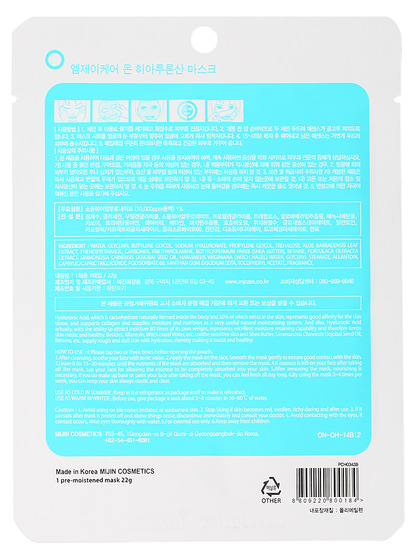 МЖ MJ CARE Маска тканевая для лица с гиалуроновой кислотой MJ on Hyaluronic Acid mask pack 22гр
