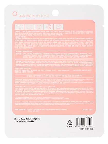 Изготовитель: MIJIN COSMETICS, Республика Корея, 53-45, 1 Gongdan-ro 6-gil, Gumi-si Gyeongsangbuk-do. Обладает ярко выраженным омолаживающим воздействием, стимулирует синтез коллагена и улучшает микроциркуляцию крови. Экстракт граната богат источником фолиевой кислоты и антиоксидантов, которые защищают кожу от вредного воздействия окружающей среды. Маска помогает избавиться от пигментных пятен, веснушек и угрей. Способ применения: Поместите маску на очищеное лицо обеспечив хороший контакт с кожей лица по всей площади нанесения. Снимите через 20 минут. Оставшуюся на лице эссенцию аккуратно разгладьте пальцами по косметическим линиям для лучшего впитывания в кожу.