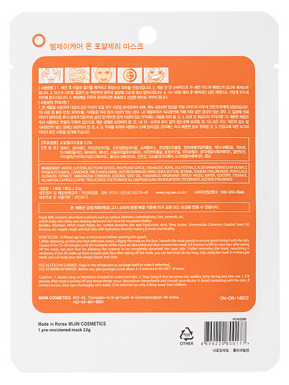 МЖ MJ CARE Маска тканевая для лица с маточным молоком MJ on Royal Jelly mask pack 22гр