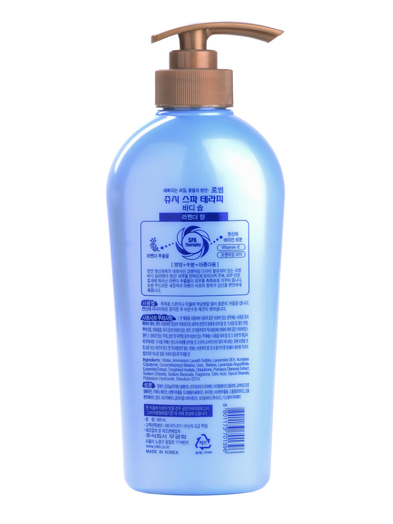 Изготовитель: «MUKUNGHWA CO. LTD. », Южная Корея, NOWON-GU, DONGIL-RO 114 BONJI, SEOUL. Благодаря содержанию компонента Коэнзим Q10, который является природным антиоксидантом, гель для душа дарит Вашей коже эластичность и мягкость. Лаванда успокаивает и увлажняет чувствительную кожу.
