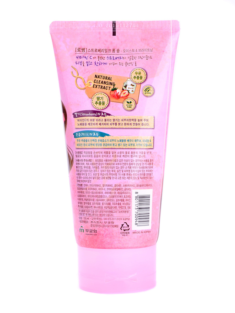Изготовитель: «MUKUNGHWA CO. LTD. », Южная Корея, NOWON-GU, DONGIL-RO 114 BONJI , SEOUL. Пенка для умывания с экстрактом клубники. Натуральная мыльная основа эффективно освежает и очищает кожу, контролируя секрецию кожного сала, стимулирует обновление клеток эпидермиса. Отбеливающая формула с клубничным экстрактом, насыщает кожу целебным витамином С, в результате чего она становится более эластичной и светлой. Молочная эссенция и экстракт бурых водорослей изумительно увлажняют и питают, оставляя кожу шелковистой и сияющей.